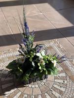 TAILLE: 38x16 cm Cette petite jardinière de fleurs artificielles, confectionné avec soin, est une manière douce et touchante de témoigner votre soutien et d'honorer la mémoire d'un être chère.