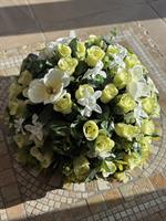 DIAMETRE: 57 cm Offrez un hommage respectueux et intemporel avec notre couronne artificielle de Deuil, une composition florale soignée, conçue pour rendre hommage à un être cher avec dignité