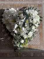 TAILLE: 57X60 cm Fleur artificielle en forme de cœur a été spécialement conçue pour exprimer la tendresse et le respect lors de moments de deuil. Parfaite pour honorer la mémoire d'un être cher, elle offre un moyen élégant et discret de transmettre vos condoléances et d'ajouter une touche de sérénité à un environnement de recueillement.