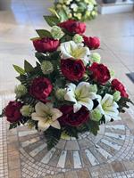 TAILLE: 92x50 cm Dans ces moments de profonde tristesse, ce panier de fleurs artificielles a été conçu pour transmettre vos pensées les plus sincères et honorer avec douceur la mémoire d'un être cher.